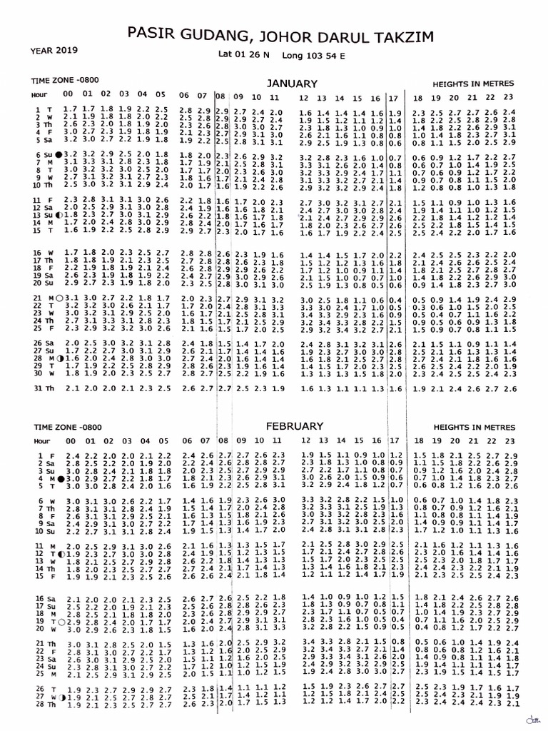 Air Pasang Surut Johor / Pasang surut adalah naik atau turunnya permukaan air laut yang disebabkan oleh pengaruh gaya gravitasi bulan dan matahari.. Pasang surut di laut adalah amat penting untuk diketahi terutamanya mereka yang melakukan aktiviti di laut. Maklumat mengenai air pasang surut ada disediakan untuk 12 lokasi di semenanjung malaysia. Hal ini terjadi akibat jarak ke bulan/matahari tidak sama pada bagian bumi yang berbeda. Mitos raja bersenu penjaga air pasang surut versi orang melayu sarawak.sama tidak dengan hantu air? Semak jadual air pasang surut secara online.